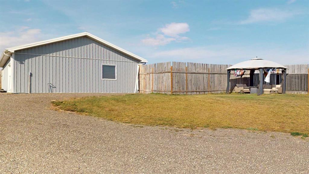 **This Acreage has Plenty to offer.** Highway 564 W - direct route to Calgary Airport**. Privacy Fence and the home was moved from Calgary onto new foundation built by Heritage Concrete in 2019. Home has all new windows and original hard wood flooring, new siding. Newer Gas Stove in Kitchen. Secondary building with Heated Garage is a separate building with a illegal suited living quarters built on Slab in 2019 and a fenced private yard. HEATED GARAGE: (17 '1" x 30'11") 553 sq ft. ILLEGAL SUITE: 683 sq ft. There is a Privacy fencing with many gates on the North East and West side of property. The whole acreage can't be seen from main road as it gently sloped to give natural shelter from the wind. Nicely Treed and has a sound Berm on West/North end of property. Room for animals to be pastured. Services for Sewer, water and Electric beside main dwelling potential for large Garage or even a Shouse or Shop. Yard is gravelled and nicely designed for circle driveway ample parking and accessibility. Water Well produces 12 GPM. New Basement Foundation on Main House has 12 ft ceilings and roughed in plumbing for a kitchen and bathrooms. Basement is a blank slate for you to develop another private Living quarters. Raised Bungalow and high ceiling with lots of windows doesn't feel like a basement - feels warm and cozy. Services for another building beside main house all in place. Two = Septic tanks perfect for multiple families. MAIN HOUSE with basement: 2145 sq ft of living space. Back of home private access to main floor and basement. Located just off pavement RR 253 and 30+ mins to Airport and Calgary. Nearest town Strathmore. 10x12 Greenhouse, 10 x 10 Gazebo, black shed 7.5x6, Shed 10.5 x 8. Virtual Tours x two on this listing, check out the 360 views and there is a button to de-furnish the rooms, garage and basement. What would you do with this property?